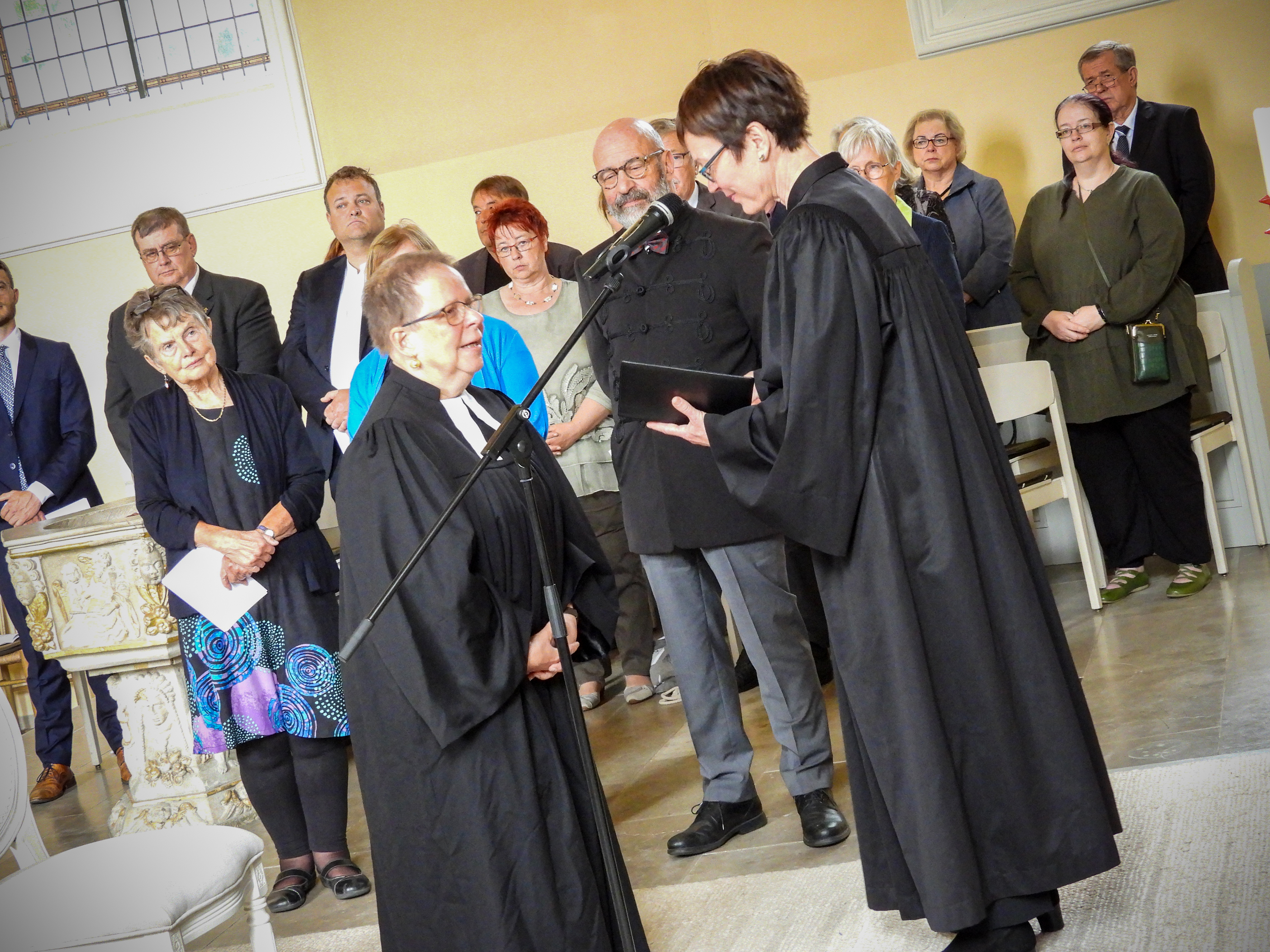 Nun aber zogen am Sonntag Kirchenvorsteher, Kollegen und Regionalbischöfin mit Pastorin Franklin unter festlicher Musik von Orgel, Chor und Posaunen in die vollbesetzte Kirche.