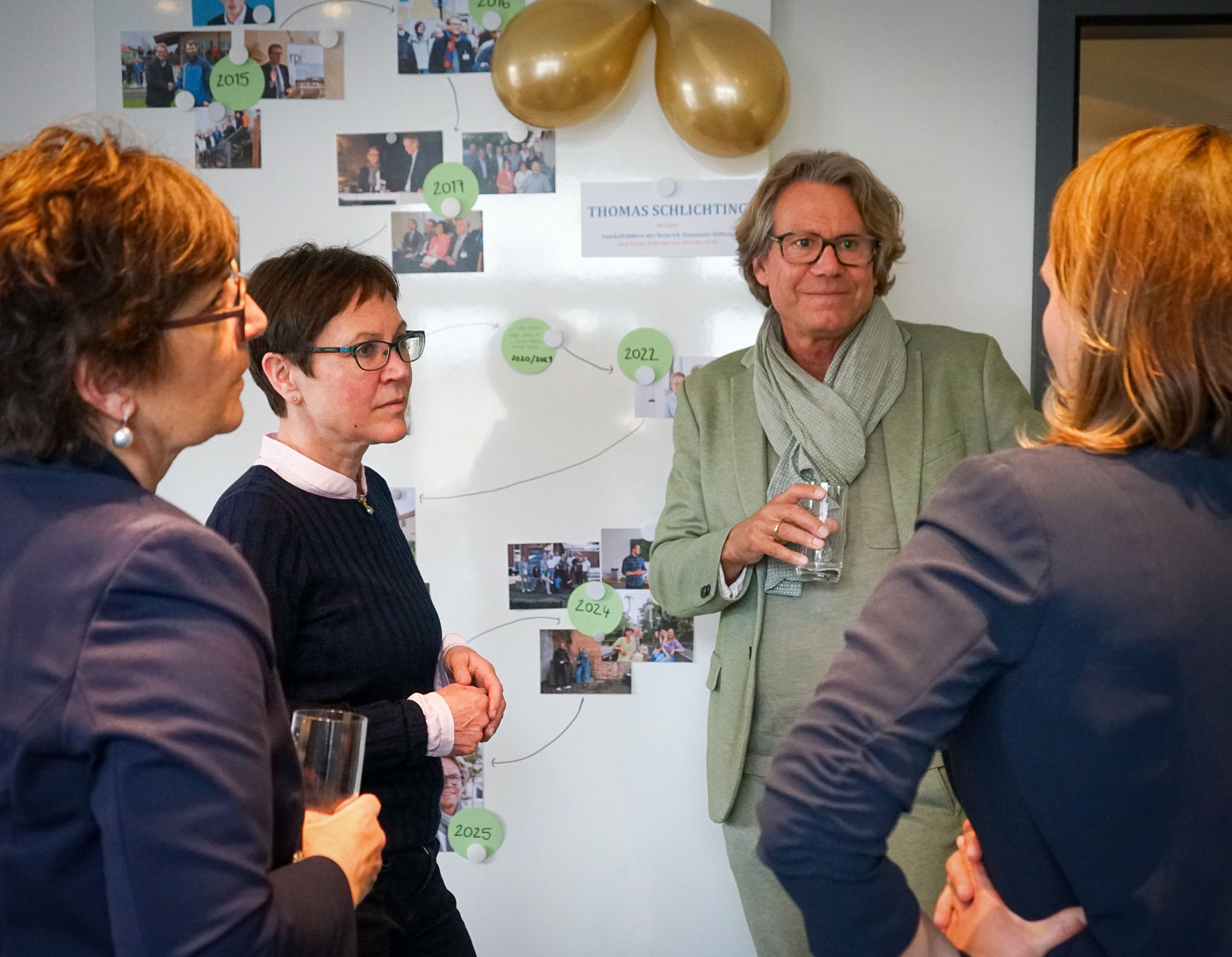 Mit einer Überraschung haben die Gremienmitglieder der Heinrich-Dammann-Stiftung ihren Geschäftsführer Thomas Schlichting am 17. April für zehn Jahre im Amt gewürdigt. Genau ein Jahrzehnt zuvor hatte der heute 56-jährige Diplom-Religionspädagoge die neu geschaffene Position angetreten. Seitdem präge er die Arbeit der Stiftung mit „strategischem Weitblick, einem feinen Gespür für gesellschaftliche Entwicklungen und dem Stifterwillen stets im Blick“, hieß es bei der internen Feierstunde.